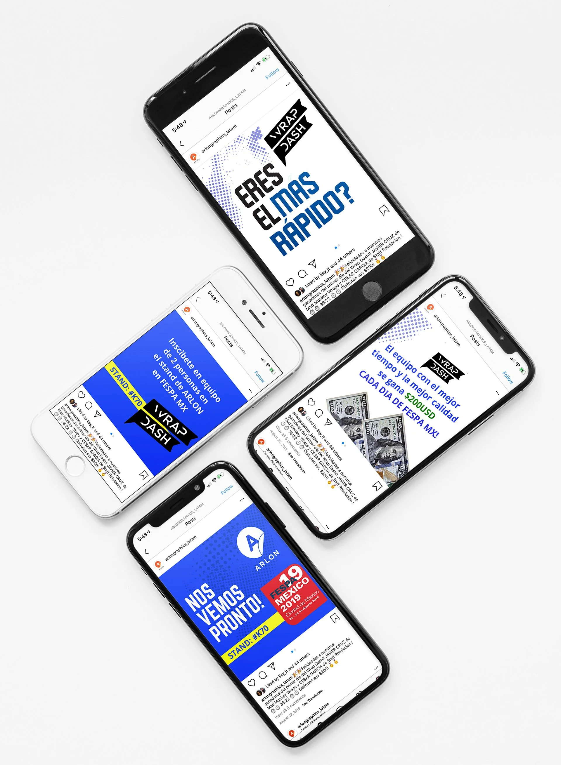 Leading up to the trade show and during the event, I created a series of Instagram posts and stories in Spanish to promote the Wrap Dash contest and to announce the daily winners. The headline translates to, “Are you the fastest?”.